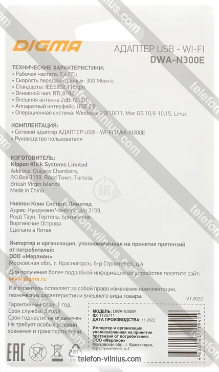 Digma DWA-N300E, ЛитваБренд: Digma