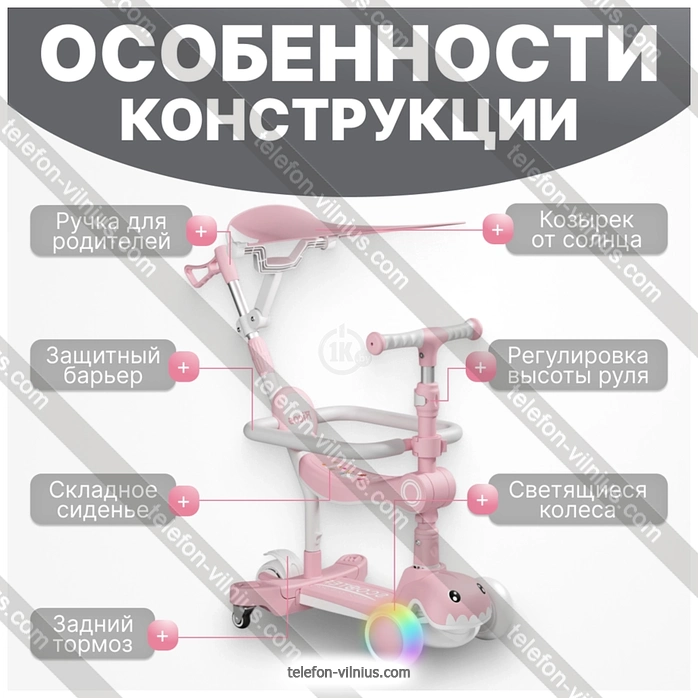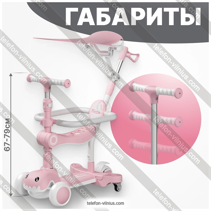 Самокат Ricos T-Rex JSCML603B (белый/розовый) купить недорого в Вильнюсе с бесплатной доставкой по Литве: онлайн-кредит и рассрочка под 0% на 12 месяцев | |