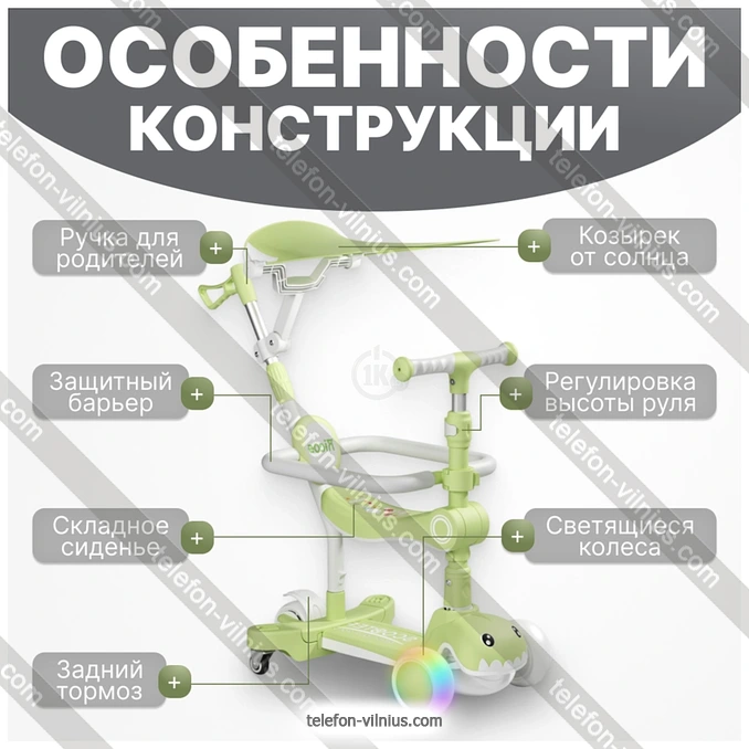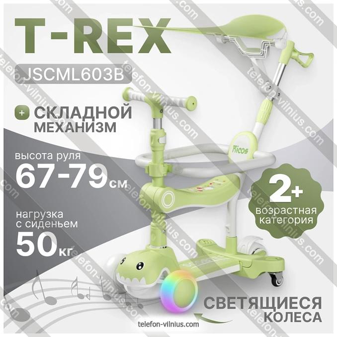 Самокат Ricos T-Rex JSCML603B (белый/зеленый) купить недорого в Вильнюсе с бесплатной доставкой по Литве: онлайн-кредит и рассрочка под 0% на 12 месяцев | |