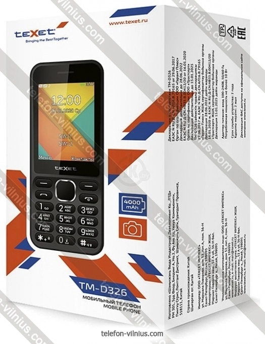 Купить телефон TeXet TM-D326: недорого, с бесплатной доставкой, г. Вильнюс