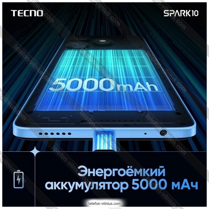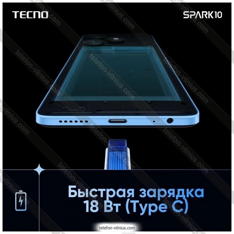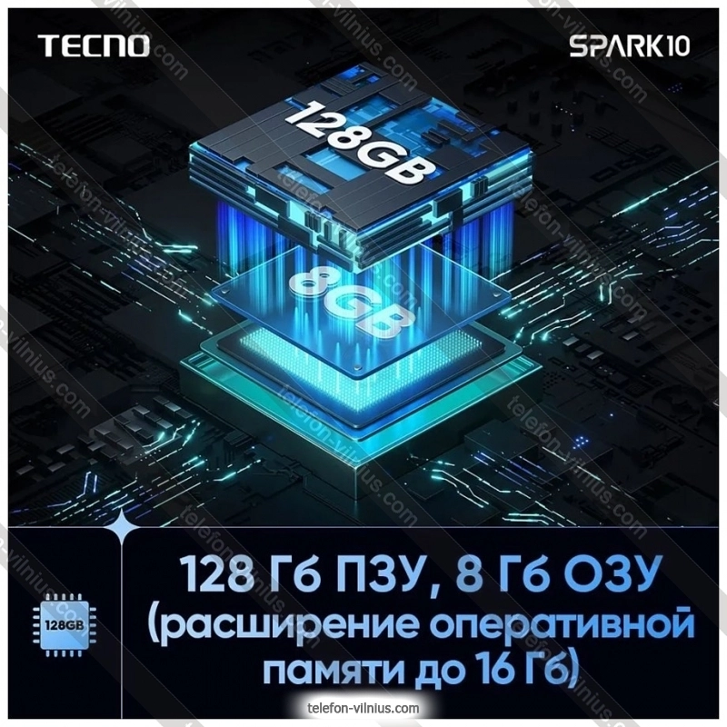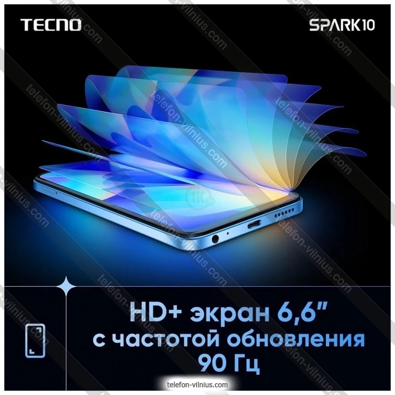 Телефон Tecno Spark 10 4/128GB в Вильнюсе, ЛитваБренд: Tecno Весенняя скидка 2026 г.: 10%, экономия: 12 €