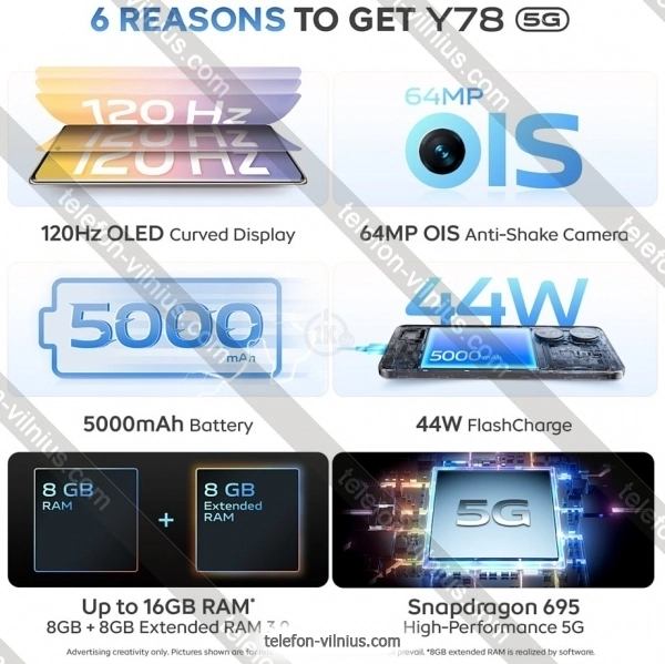 Купить телефон Vivo Y78 5G 12/256Gb: недорого, с бесплатной доставкой, г. Вильнюс