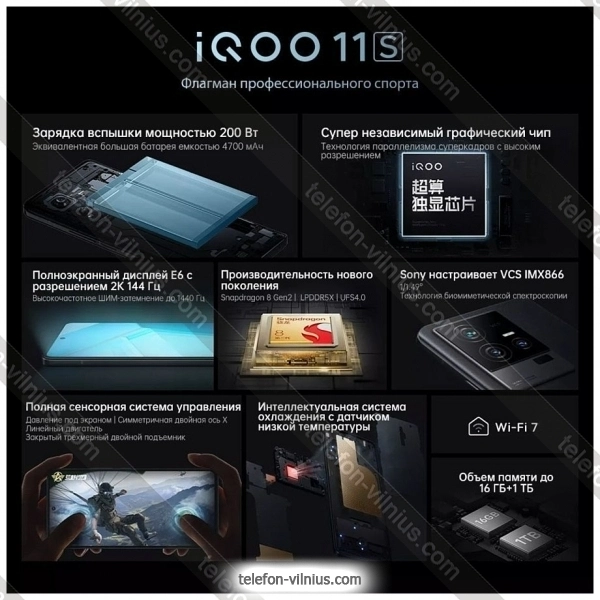 Купить телефон Vivo iQOO 11S 5G NFC 16/256GB: недорого, с бесплатной доставкой, г. Вильнюс