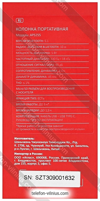 | Версия Bluetooth | 5.1 |