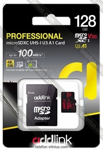 Addlink microSDXC AD128GBMSXU3A 128GB (с адаптером) - купить в Вильнюсе, Литва.Бренд: Addlink Зимняя скидка 2025 г.: 15%, экономия: 8 €