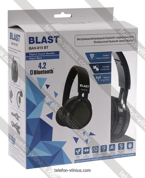 Наушники BLAST BAH-817BT - купить в Вильнюсе, Литва.Бренд: BLAST Весенняя скидка 2026 г.: 15%, экономия: 6 €