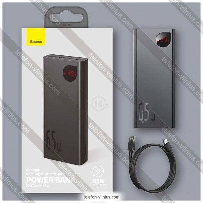 Baseus Adaman Metal Digital Display PPIMDA-D01 20000mAh — низкая цена по скидке, товар в наличии и бесплатная доставка по всей Литве