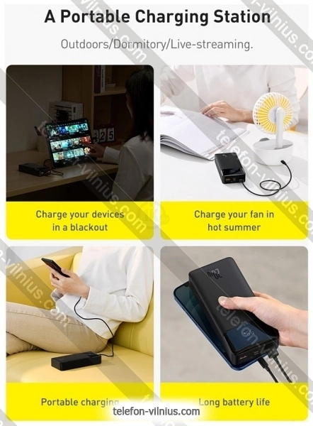 Baseus Bipow Fast Charge Power Bank 20W 20000mAh (ppbd050302) - купить в Вильнюсе, Литва.Бренд: Baseus Зимняя скидка 2025 г.: 15%, экономия: 3 €