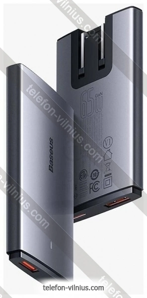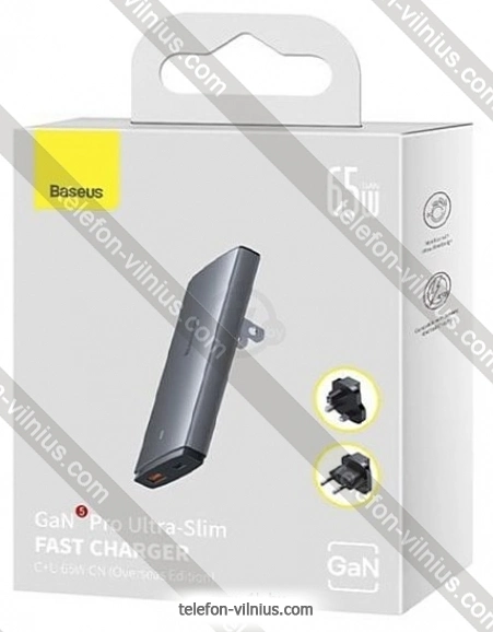 Baseus GaN5 Pro Ultra-Slim Fast Charger C+U 65W CCGP150113 - купить в Вильнюсе, Литва.Бренд: Baseus Зимняя скидка 2025 г.: 10%, экономия: 6 €