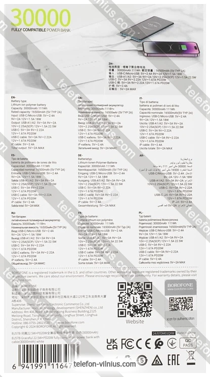 | | | Емкость | 30 000 мАч |