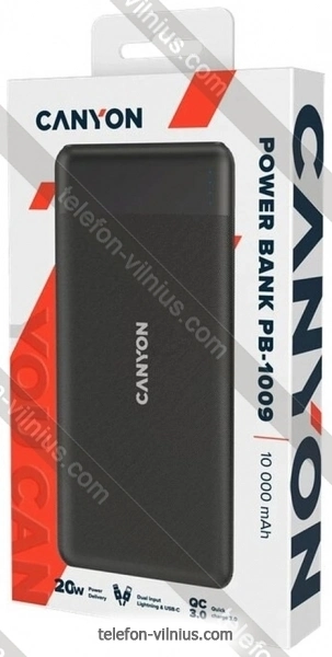 Canyon PB-109 10000mAh CNE-CPB1009B - купить в Вильнюсе, Литва.Бренд: Canyon |