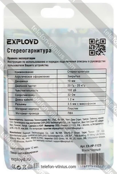 Наушники EXPLOYD EX-HP-1123 - купить в Вильнюсе, Литва.Бренд: EXPLOYD | |
