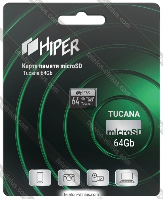 Hiper microSDHX 64GB Class 10 UHS-1 U3 HI-MSD64GU3 - купить в Вильнюсе, Литва.Бренд: Hiper |
