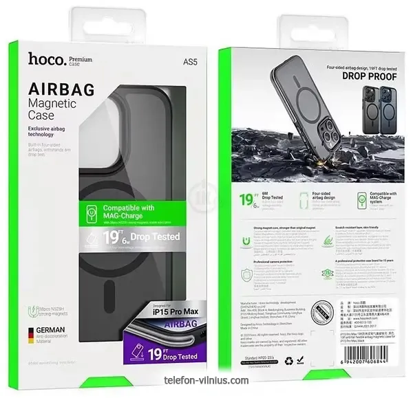 Чехол для телефона Hoco AS5 для iPhone 15 Pro магнитный противоударный (черный) - купить в Вильнюсе, Литва.Бренд: Hoco |