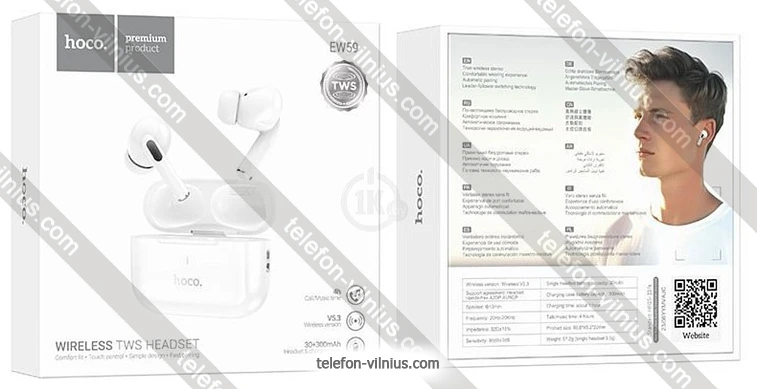 Наушники Hoco EW59 TWS: купить в кредит или рассрочку, интернет-магазин в Вильнюсе с бесплатной доставкой по Литве,