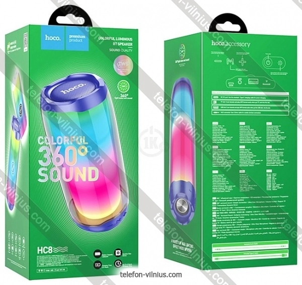 Портативная акустика Hoco HC8 Pulsating (синий) - купить в Вильнюсе, Литва.Бренд: Hoco Зимняя скидка 2025 г.: 15%, экономия: 3 €