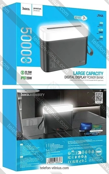 Hoco J94A 50000mAh — низкая цена по скидке, товар в наличии и бесплатная доставка по всей Литве