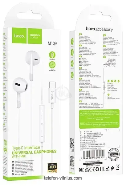 Наушники Hoco M109 USB Type-C - купить в Вильнюсе, Литва.Бренд: Hoco |