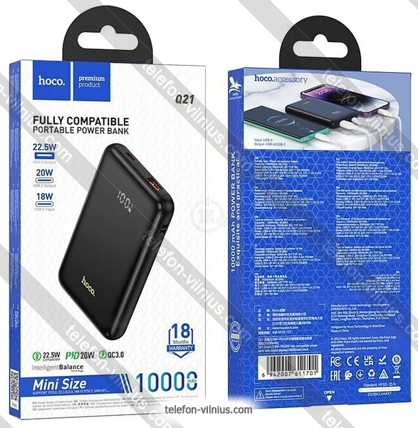 Hoco Q21 10000mAh - купить в Вильнюсе, Литва.Бренд: Hoco |