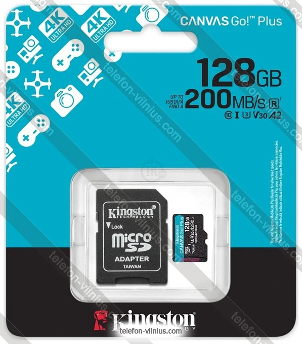 Карта памяти Kingston Canvas Go! microSDXC 128GB SDCG4/128GB (с адаптером): купить в кредит или рассрочку, интернет-магазин в Вильнюсе с бесплатной доставкой по Литве,