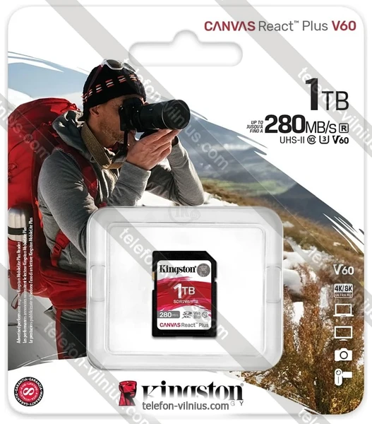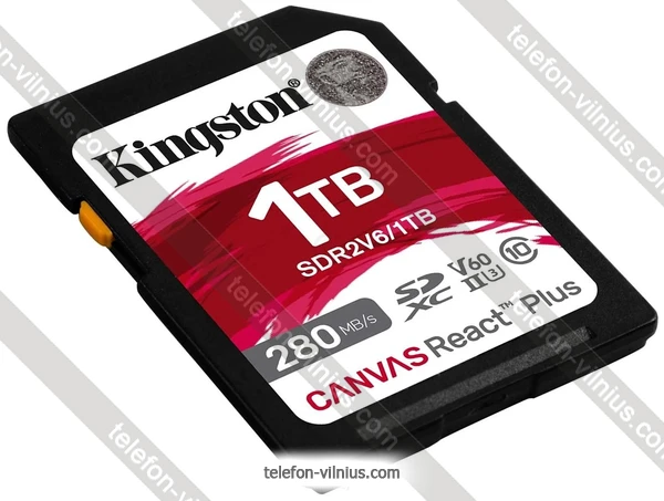 Карта памяти Kingston Canvas React Plus V60 SDXC 1TB - купить в Вильнюсе, Литва.Бренд: Kingston Весенняя скидка 2026 г.: 15%, экономия: 26 €