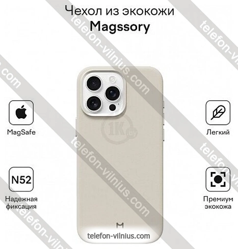 Magssory Eco Leather Case Ivory для iPhone 16 Pro Max CLT029i — низкая цена по скидке, товар в наличии и бесплатная доставка по всей Литве