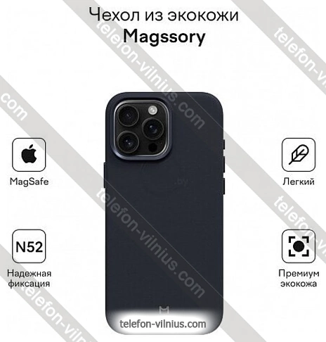 Magssory Eco Leather Case Blue для iPhone 16 Pro Max CLT029b — низкая цена по скидке, товар в наличии и бесплатная доставка по всей Литве