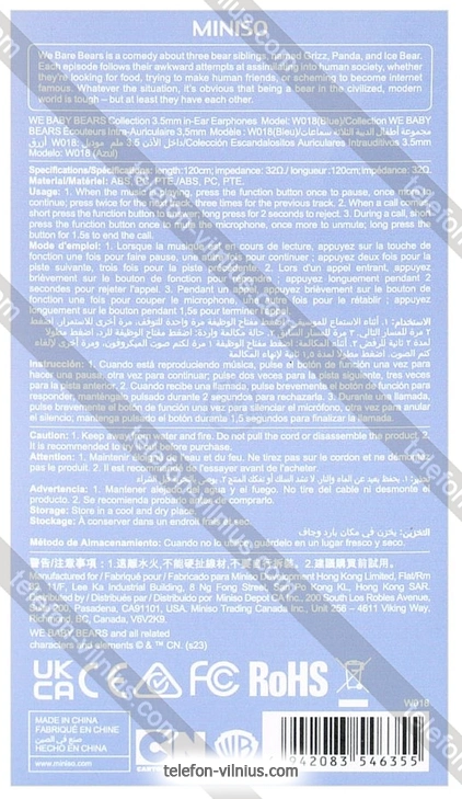 Наушники Miniso We Baby Bears Collection 6355: купить в кредит или рассрочку, интернет-магазин в Вильнюсе с бесплатной доставкой по Литве,