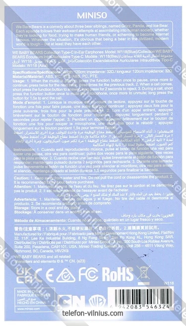 Наушники Miniso We Baby Bears Collection 6324: купить в кредит или рассрочку, интернет-магазин в Вильнюсе с бесплатной доставкой по Литве,