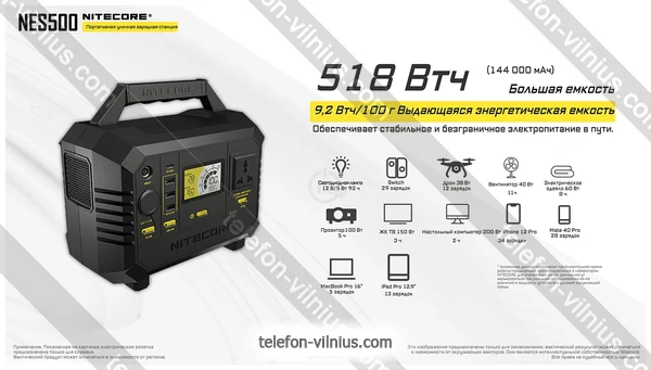 Портативная зарядная станция Nitecore NES500 недорого — весенняя распродажа 2026 со скидкой 10%, г. Вильнюс, Литва.