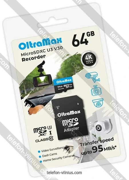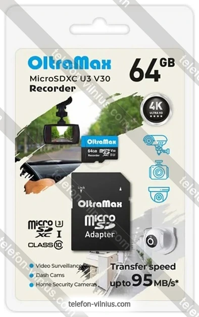 Карта памяти OltraMax Recorder microSDXC 64GB OM64GCSDXC10-U3-V30 (с адаптером): купить в кредит или рассрочку, интернет-магазин в Вильнюсе с бесплатной доставкой по Литве,