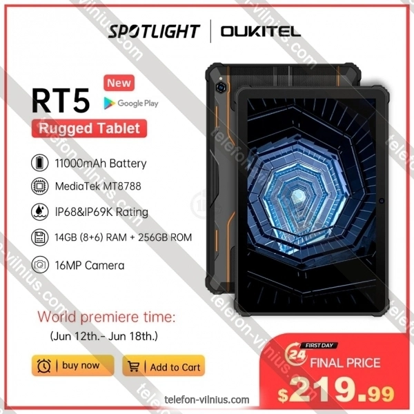 Планшет Oukitel RT5 - купить в Вильнюсе, Литва.Бренд: Oukitel Зимняя скидка 2025 г.: 10%, экономия: 20 €
