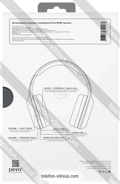 Наушники Pero BH04 (красный) - купить в Вильнюсе, Литва.Бренд: Pero |