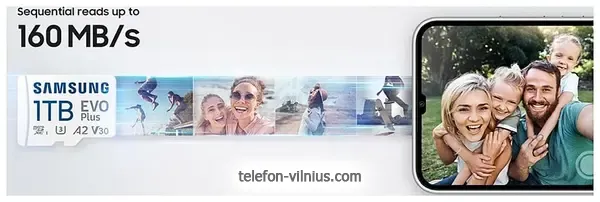 Карта памяти Samsung EVO Plus 2024 microSDXC 128GB (с адаптером) - купить в Вильнюсе, Литва.Бренд: Samsung |