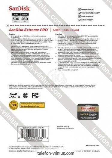 SanDisk Extreme PRO SDXC SDSDXDK-256G-GN4IN 256GB - купить в Вильнюсе, Литва.Бренд: SanDisk Зимняя скидка 2025 г.: 15%, экономия: 42 €