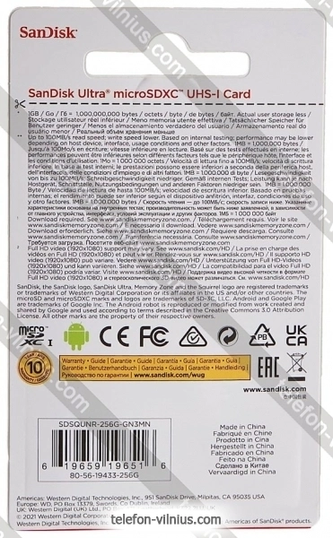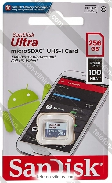 Карта памяти SanDisk Ultra microSDXC SDSQUNR-256G-GN3MN 256GB - купить в Вильнюсе, Литва.Бренд: SanDisk |