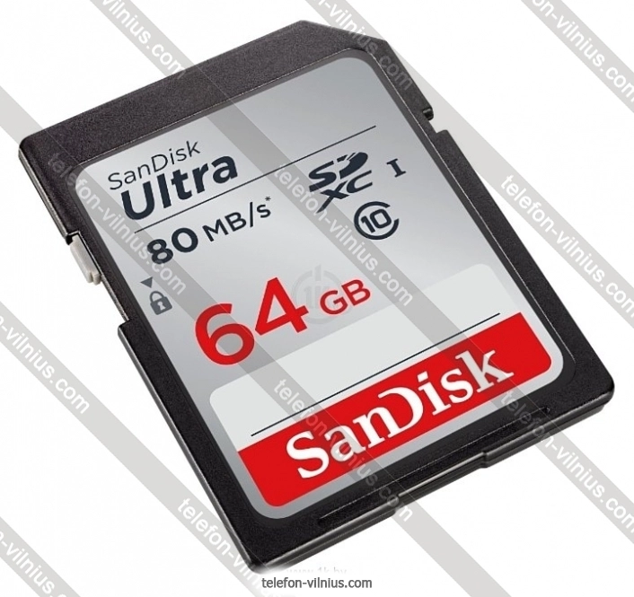 Sandisk Ultra SDXC Class 10 UHS-I 80MB/s 64GB - купить в Вильнюсе, Литва.Бренд: Sandisk |