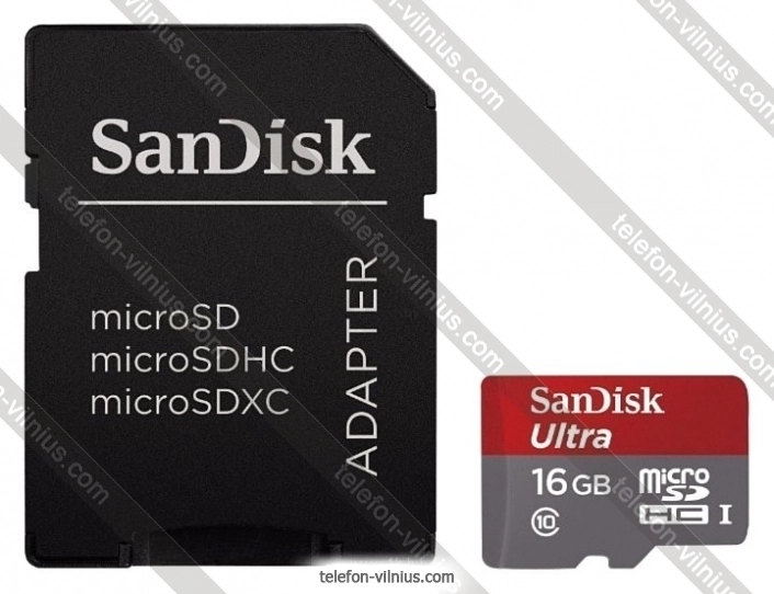 Sandisk Ultra microSDHC Class 10 UHS-I 48MB/s 16GB + SD adapter - купить в Вильнюсе, Литва.Бренд: Sandisk |