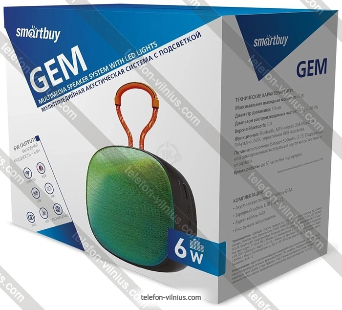 Портативная акустика SmartBuy Gem SBS-5500, ЛитваБренд: SmartBuy |