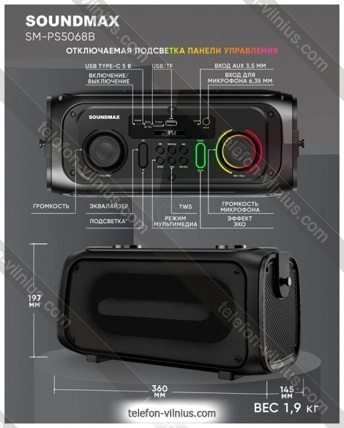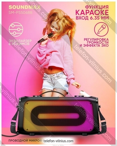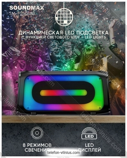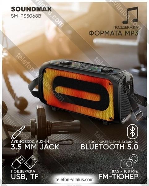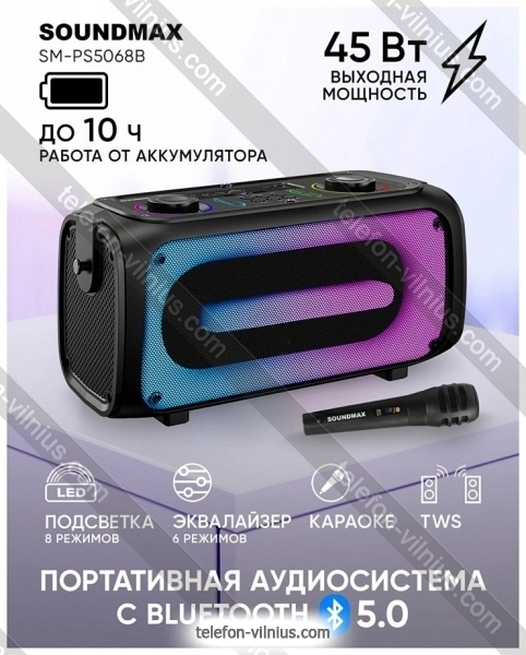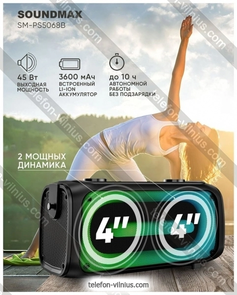 Портативная акустика Soundmax SM-PS5068B - купить в Вильнюсе, Литва.Бренд: Soundmax Зимняя скидка 2025 г.: 10%, экономия: 5 €