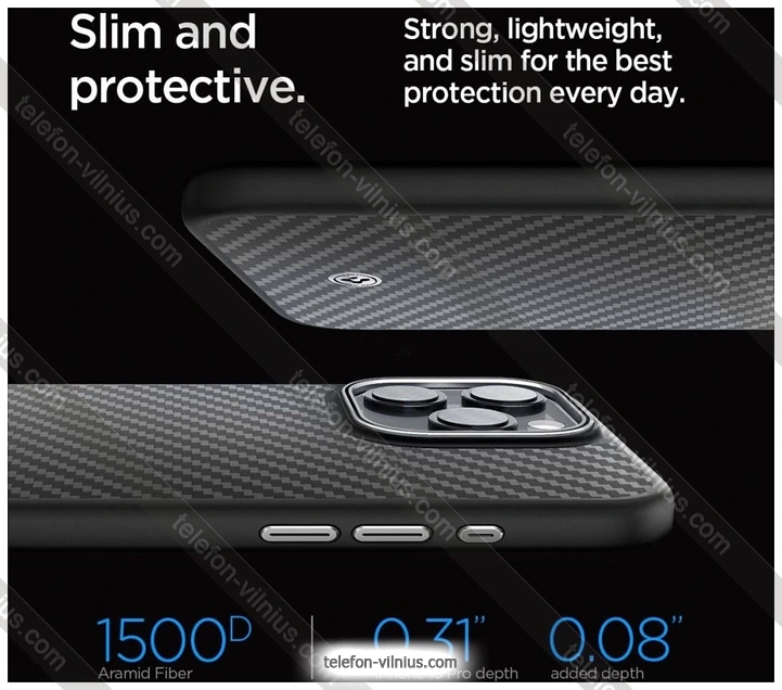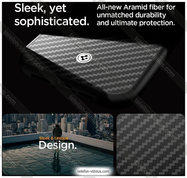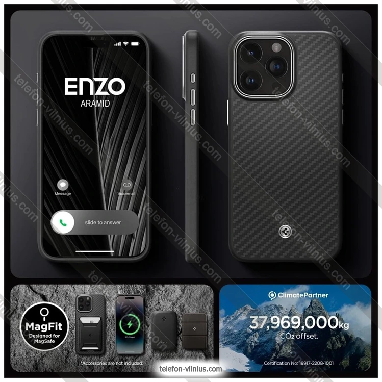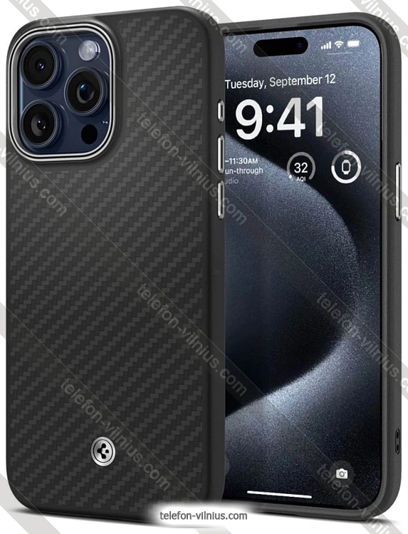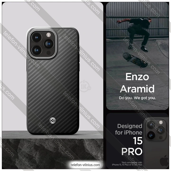 Чехол для телефона Spigen Enzo Aramid для iPhone 15 Pro ACS07045 (черный), ЛитваБренд: Spigen Зимняя скидка 2025 г.: 20%, экономия: 8 €