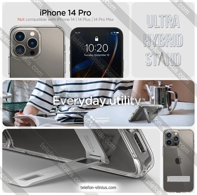 Чехол для телефона Spigen Ultra Hybrid S iPhone 14 Pro Crystal Clear ACS04973 (прозрачный): купить в кредит или рассрочку, интернет-магазин в Вильнюсе с бесплатной доставкой по Литве,