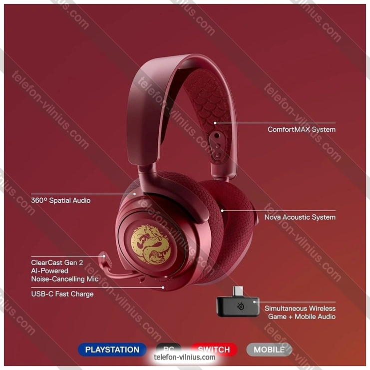 Наушники SteelSeries Arctis Nova 7 Wireless Dragon Edition: купить в кредит или рассрочку, интернет-магазин в Вильнюсе с бесплатной доставкой по Литве,