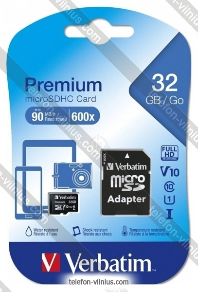 Карта памяти Verbatim microSDXC Class 10 UHS-1 32GB + SD adapter - купить в Вильнюсе, Литва.Бренд: Verbatim |