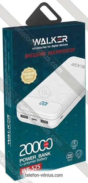 Walker WB-525 20000 mAh - купить в Вильнюсе, Литва.Бренд: Walker Весенняя скидка 2026 г.: 10%, экономия: 2 €